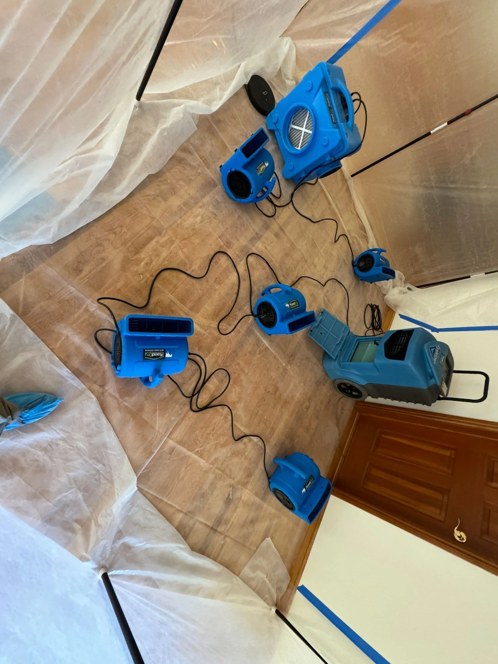 - Full structural drying after severe flooding, including complete moisture extraction and dehumidification